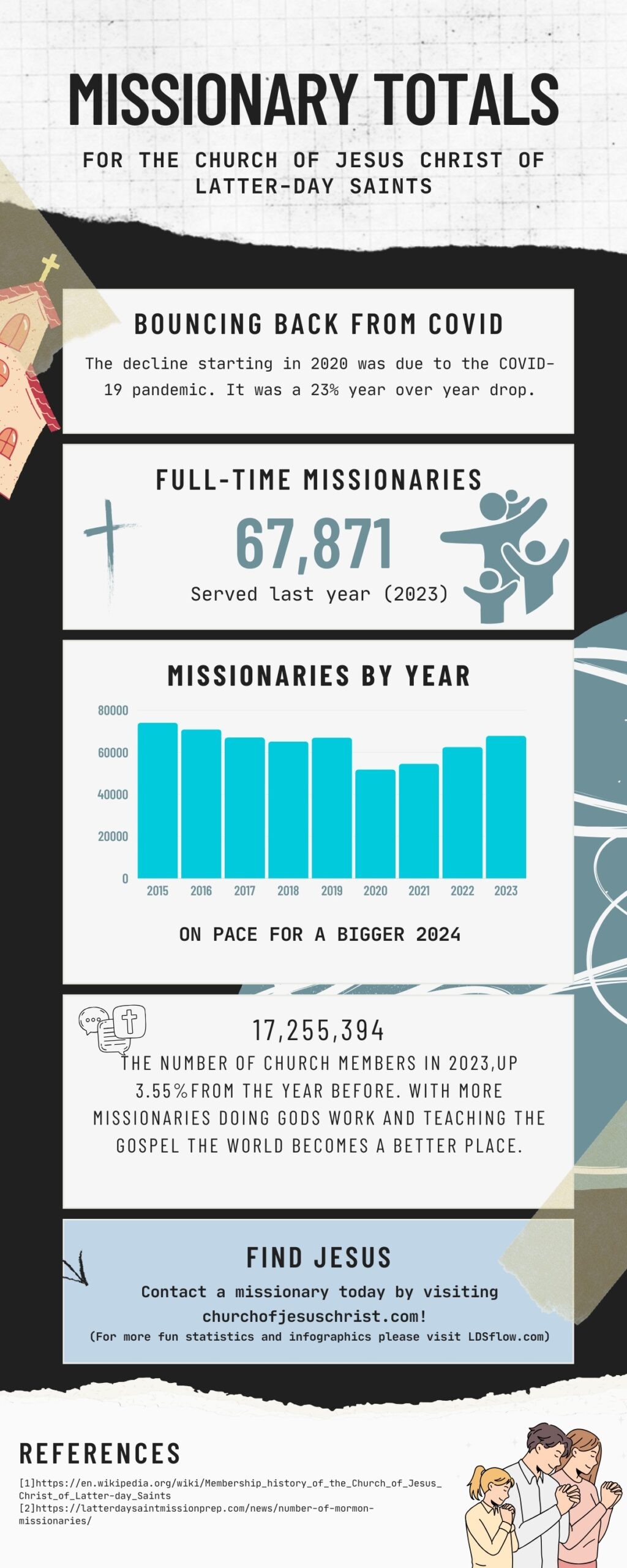 - COVID-19 Impact (2020): The global pandemic caused an unprecedented disruption. Missionary numbers plummeted by 23% year-over-year, the largest single-year decline in recorded history. This drop was primarily due to the Church’s decision to bring all missionaries to their home countries and offer them the choice to continue or postpone their service. Approximately 80% chose to continue.