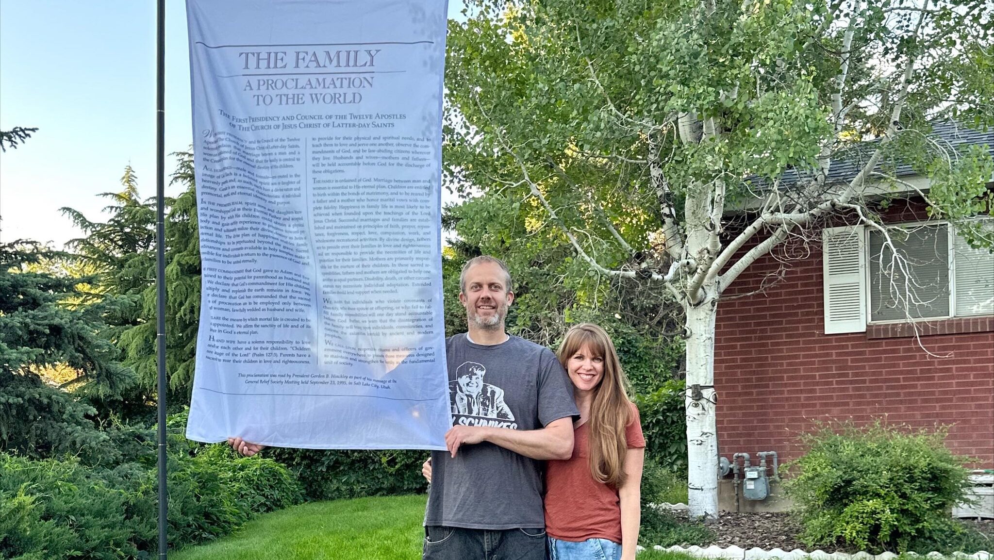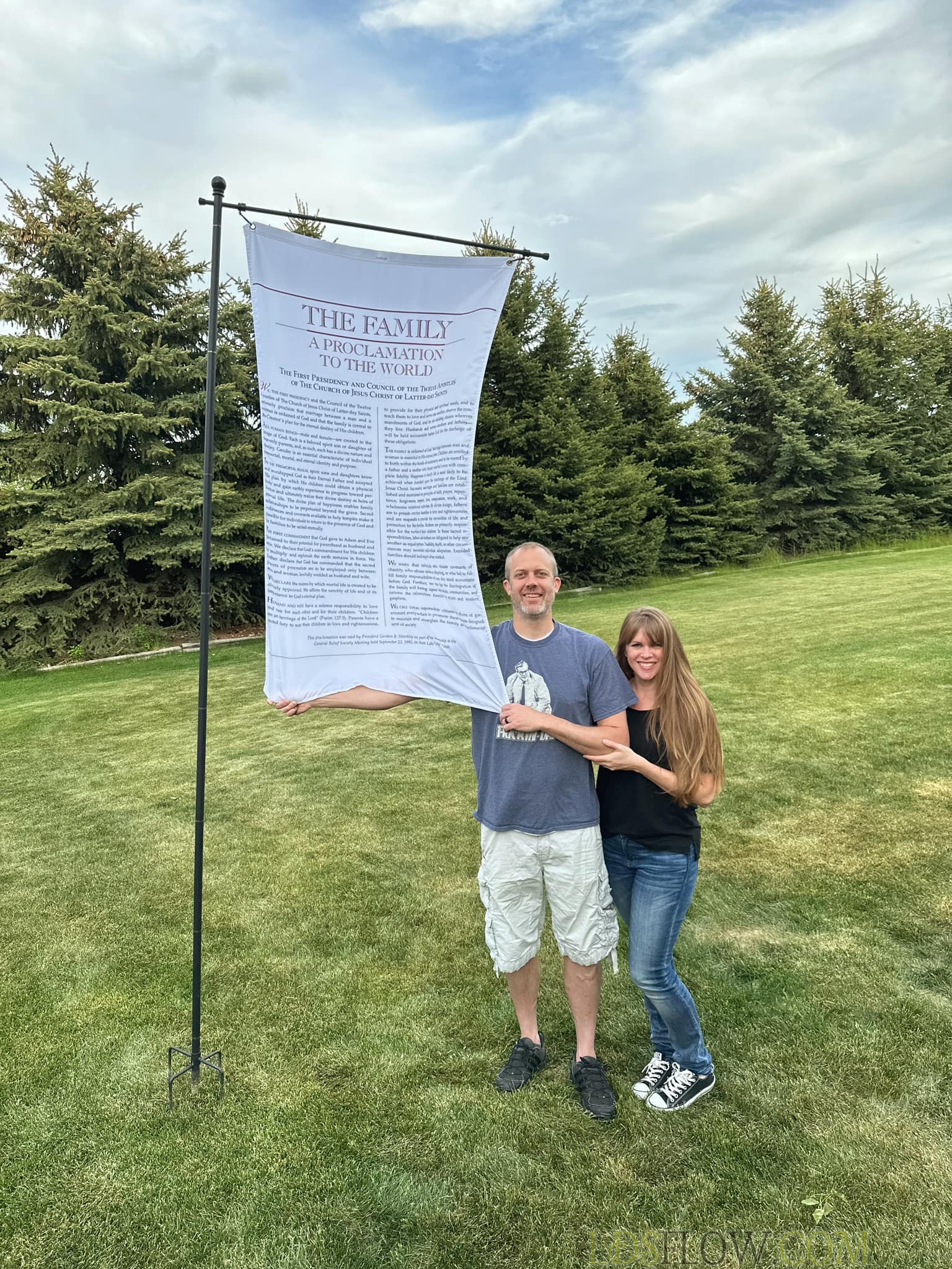 Most shocking was the deliberate desecration of Sister Despain’s private property when this individual had pride flags planted in the family’s front yard—a direct mockery of their sacred beliefs. As Sister Despain shared in her recent court hearing: “The opposing counsel accused me of indoctrinating the public by flying The Family Proclamation as a flag in my front yard… He implied that was no different than Pride flags displayed in public schools.”